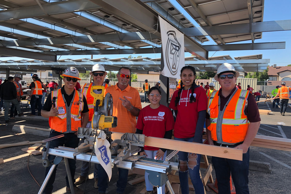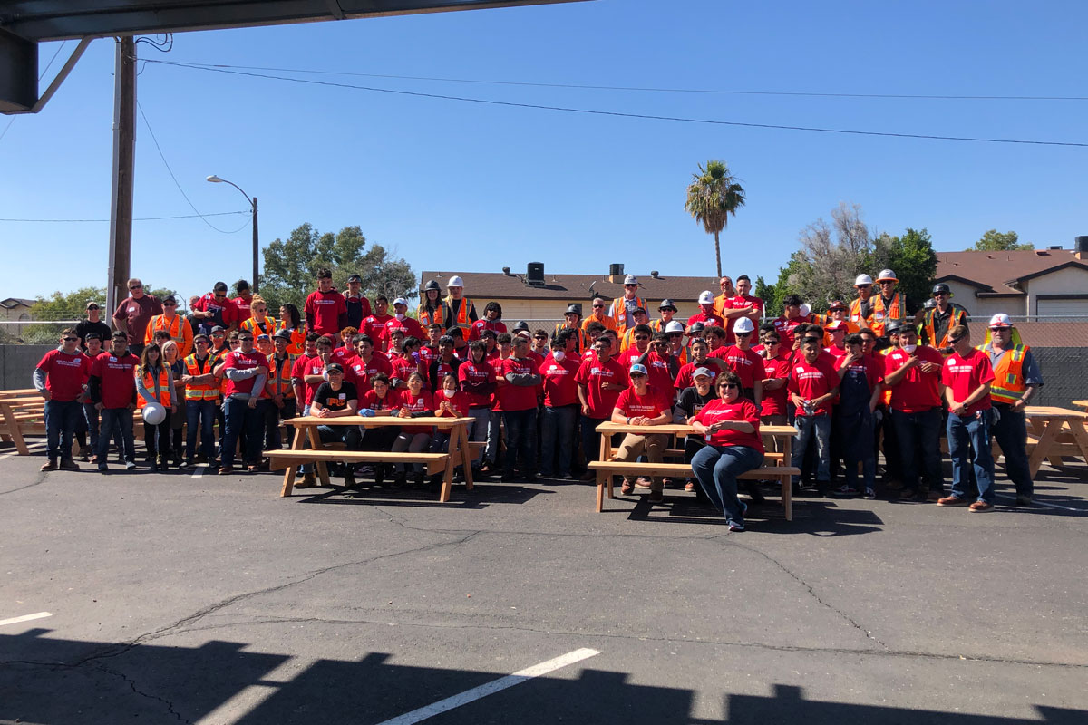 Partnering with Agua Fria Union High School District, Agua Fria High School, Generation T, Timberland PRO, and Lowes, volunteers spent the day building 60+ picnic tables for the community through a program called The Better Building Project!