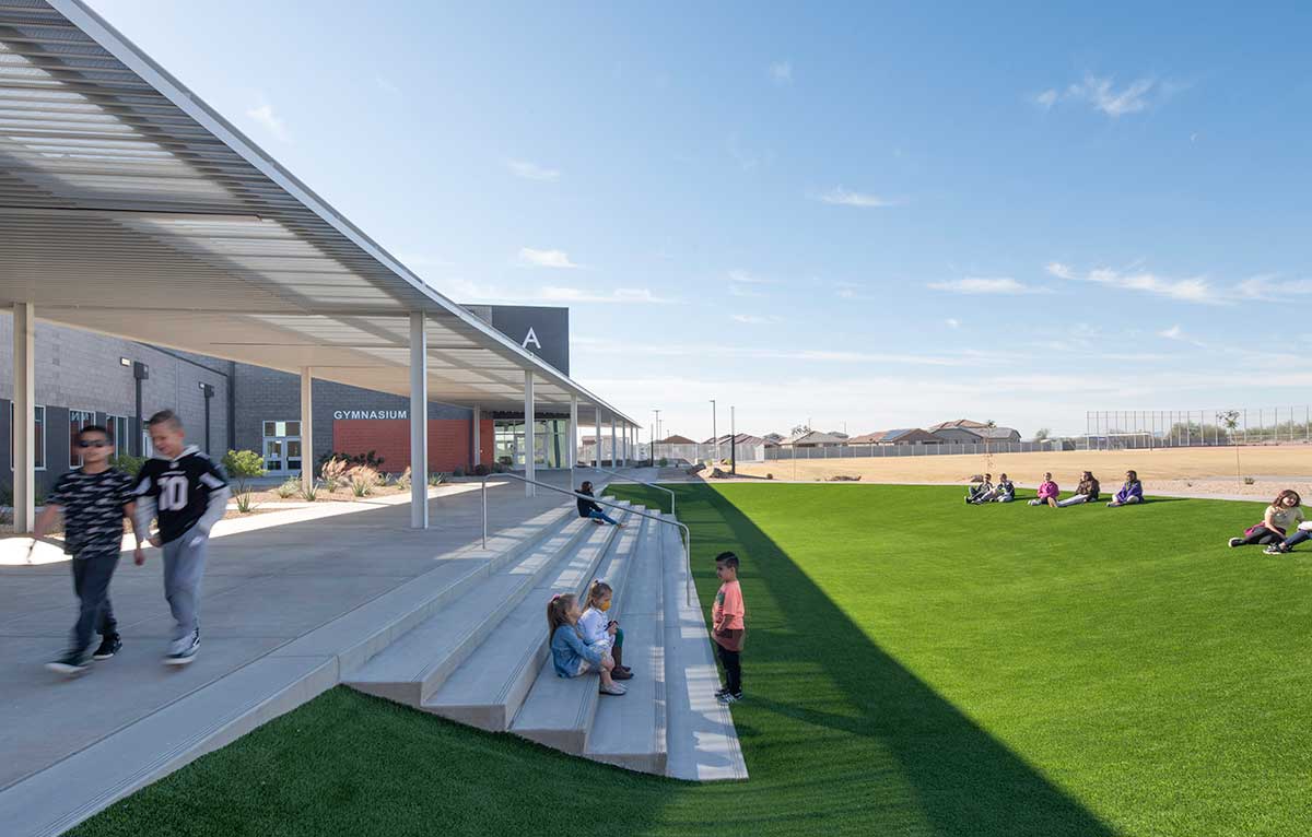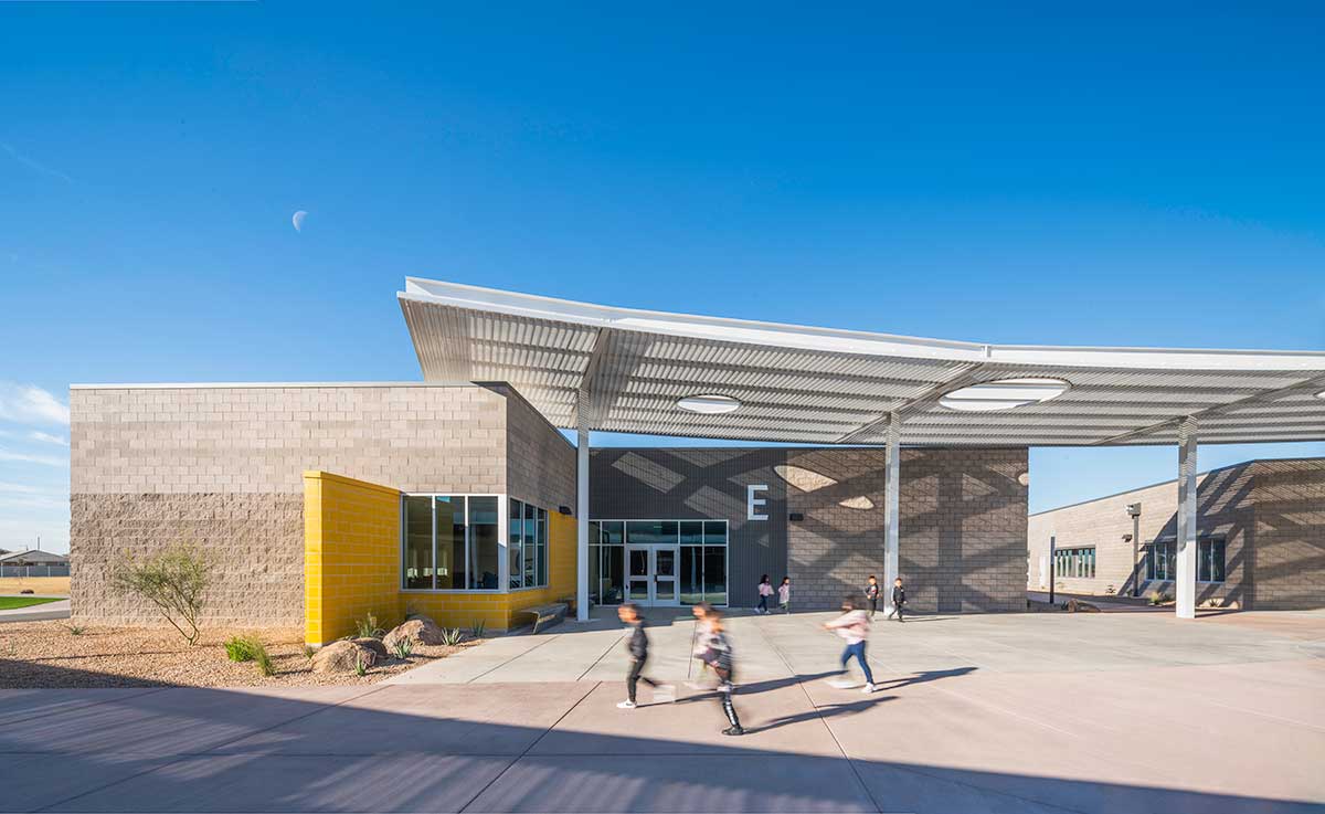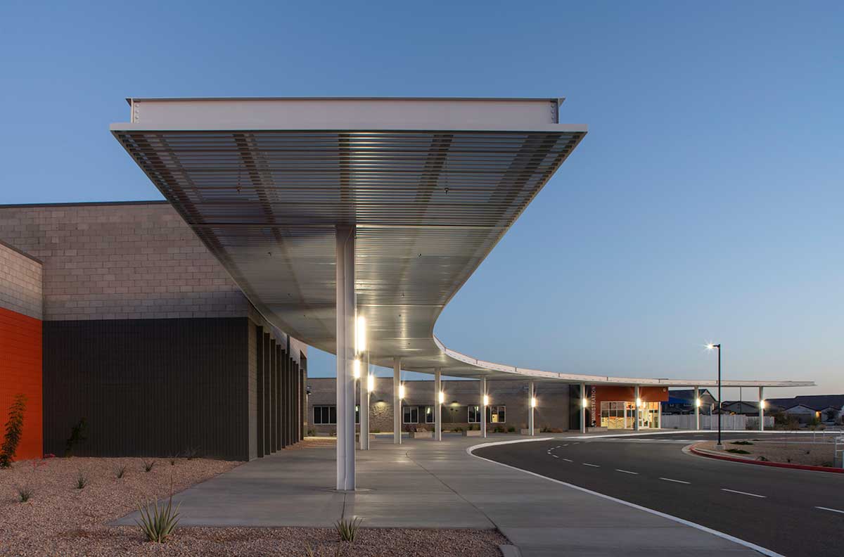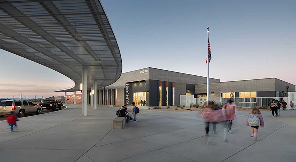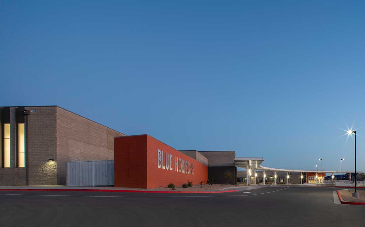 The Blue Horizon Elementary School is a brand new PreK-8 elementary within the Blue Horizon community. The 96,443 SF multi-phased project will include five total buildings consisting of an administration building, multipurpose building and classroom buildings. The new school will accommodate student population growth within the city of Buckeye and Liberty Elementary School District.