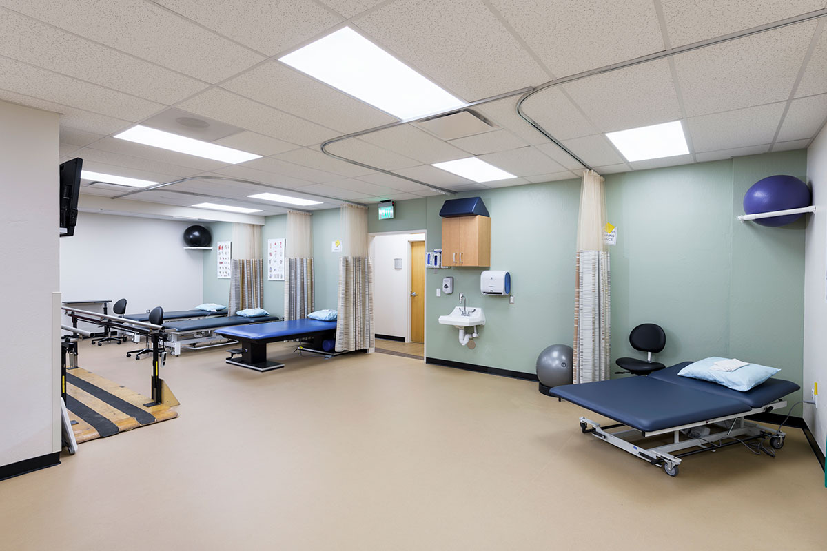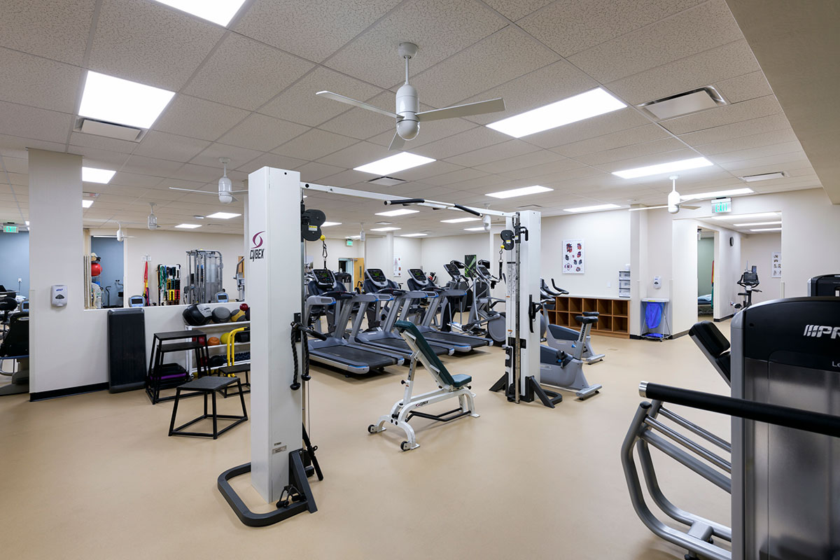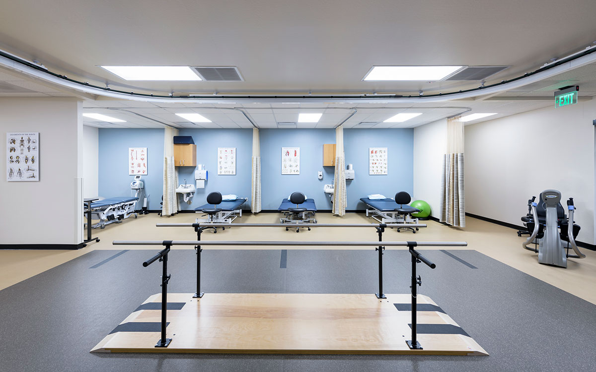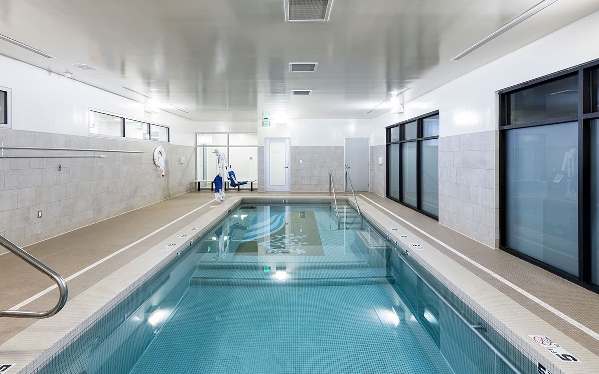 The one-story building addition included new restrooms and an indoor, in ground therapy pool. Renovating the existing space included interior finishes, paint, flooring, millwork, medical-grade pool, ADA lift, and a solo strap system for the physical therapy gym.