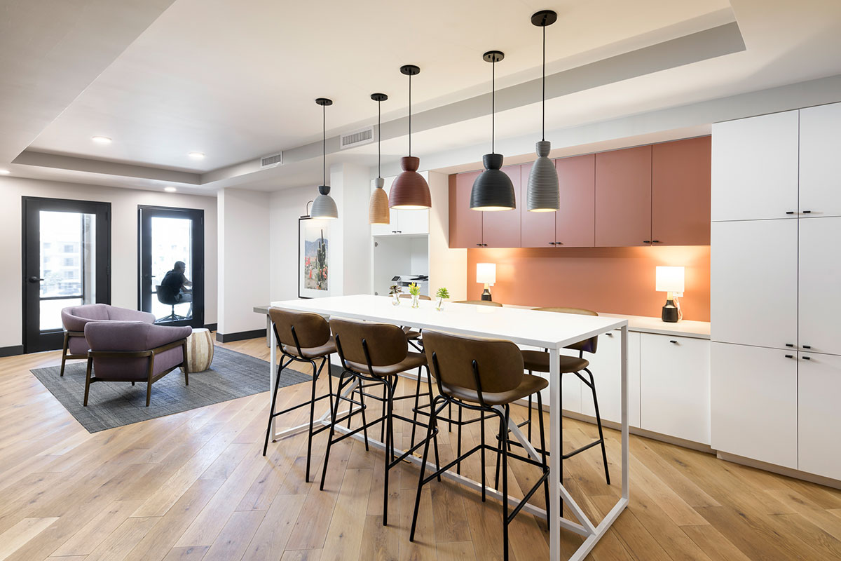 The Fillmore will feature traditional one-, two- and three-bedroom apartments – as well as alcove studios and junior one-bedroom units – ranging in size from 489 to 1,626 square feet. Building amenities include a clubhouse, a fitness center and a large pool deck. The building’s lobby will offer concierge services, a coffee bar, a ride-share lounge and a mailroom. The clubhouse will feature work-from-home suites, a tequila room for resident gatherings, a billiards room, a kitchen and bar, a lounge, a catering kitchen, a double-sided fireplace and a shuffleboard. The urban paseo will be designed to accommodate walking, biking and driving traffic and will feature well-appointed lush landscaping, public gathering areas, decorative lighting, public art and additional street parking.