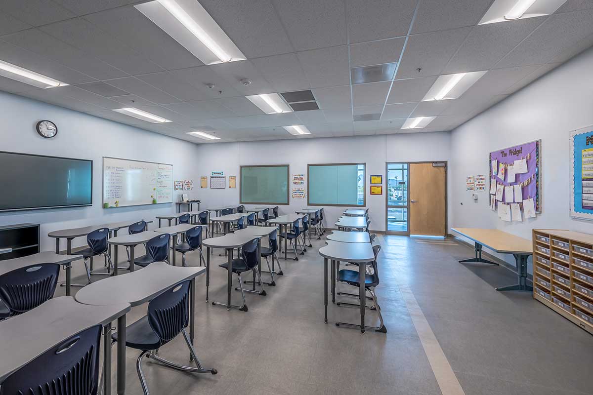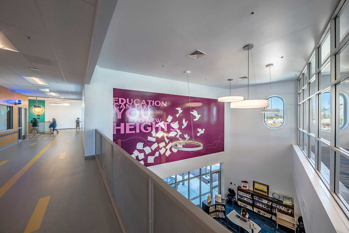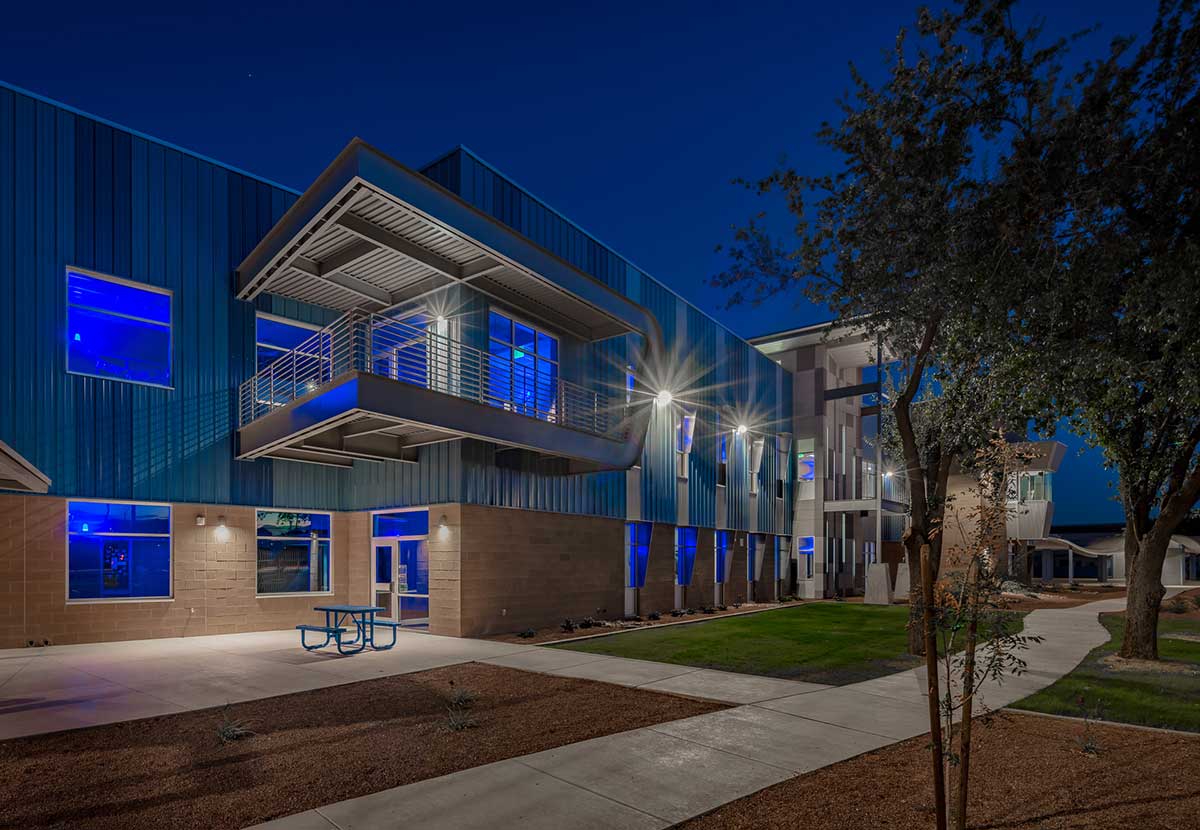 The new 40,000 SF, two-story classroom building will provide maker spaces, a media center, and a computer lab along with 24 new classrooms. The new design supports FWUSD’s flight-based curriculum both functionally and aesthetically. The new building elements will be reminiscent of aircraft construction by using lighter metal. The school will feature themed pathways like the “Flight of the Bumblebee Trail”, a “launch pad” to serve as an outdoor learning space, flight-related experiments and lessons, a flight deck balcony, jet liner windows and a cock pit alcove that offers amazing views of the Catalina Mountains and gives students an understanding of what’s really like to fly! The renovation also includes renovations to existing classroom pods, updated administration spaces traffic improvements and site upgrades.